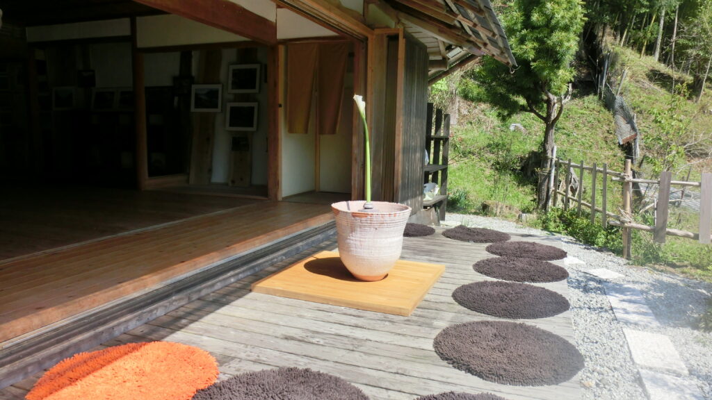 ギャラリースペース、飛び石廊下、暖炉のあるリビングなど、陶器アートと古民家の温もりが調和した空間です。